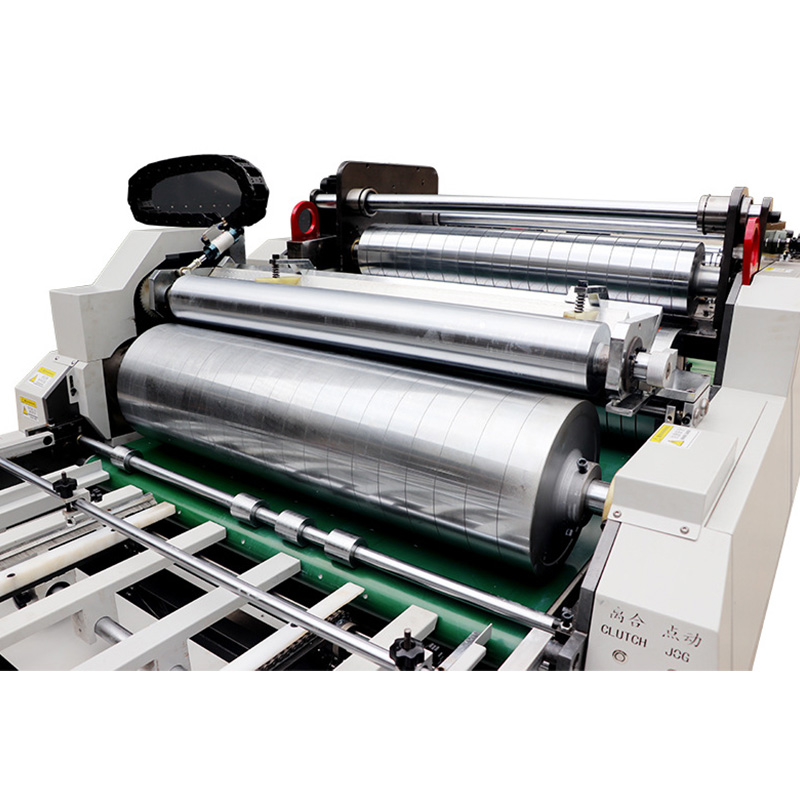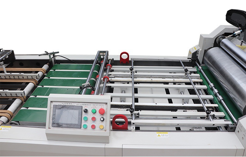 滾刀及送膜采用伺服電機(jī)控制傳送及滾筒吸附連續(xù)式粘貼,相比傳統(tǒng)間歇式粘貼具有貼合速度快,精度高,對(duì)薄膜要求低等優(yōu)點(diǎn),可一次性貼3張30絲厚膜。帶多刀功能。